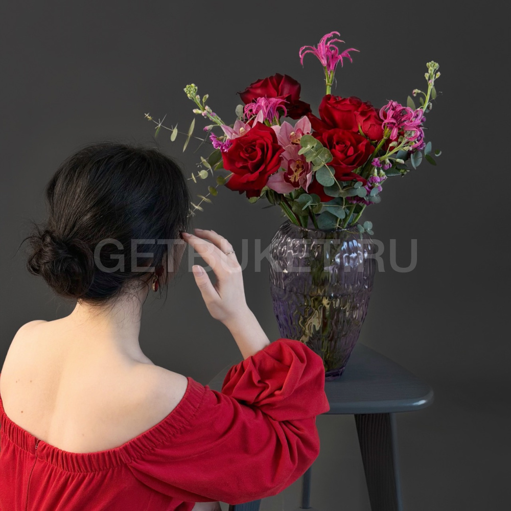 Букет из 19 красных роз с эвкалиптом10 970 ₽Букет из 19 красных роз с эвкалиптом 10 970 ₽ -
