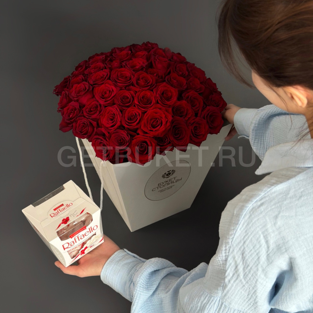 Цветочная композиция из роз с конфетами в виде сердца8 300 ₽Цветочная композиция из роз с конфетами в виде сердца 8 300 ₽