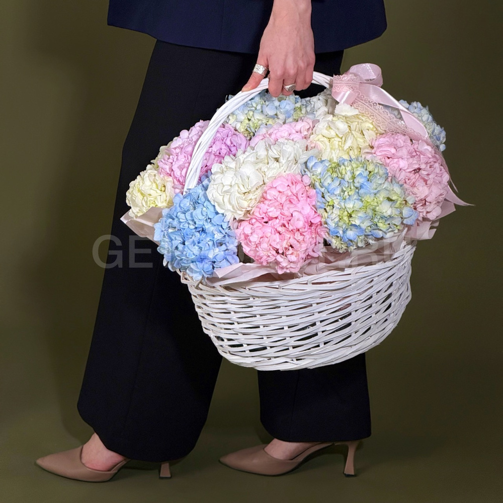 Цветочная корзина нежных гортензий