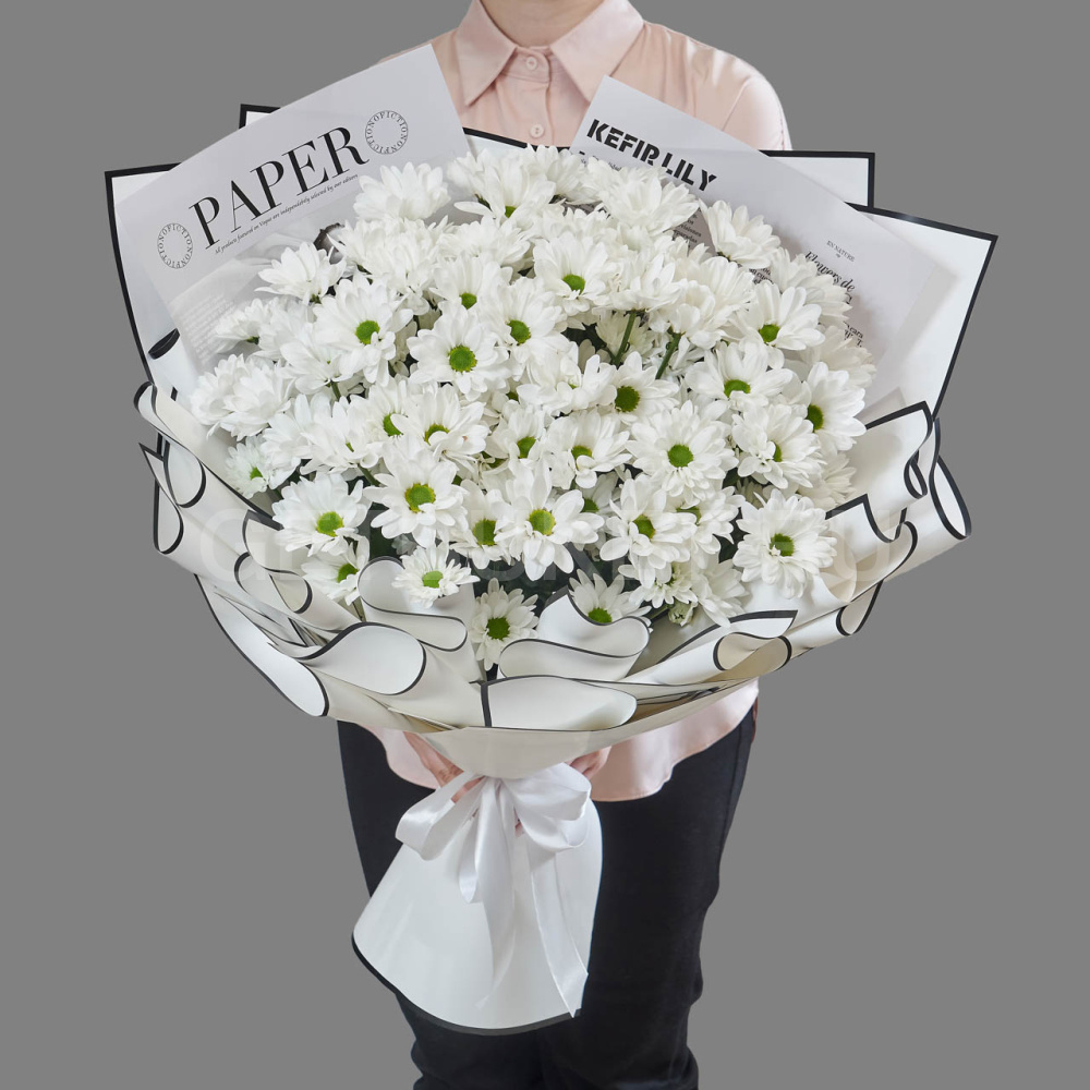 Белый букет из 11 хризантем