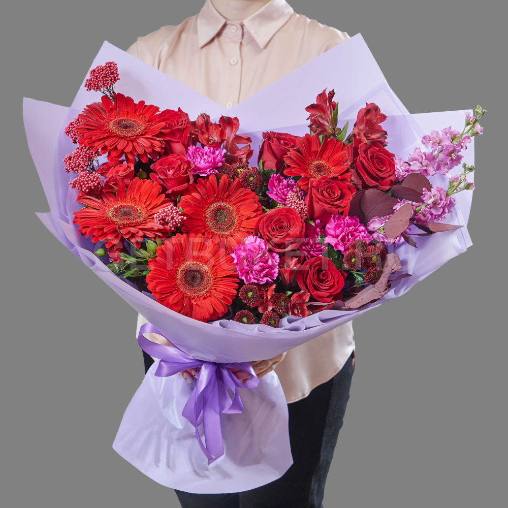Букет розовых гербер, хризантем и роз с альстромерией11 840 ₽Букет розовых гербер, хризантем и роз с альстромерией 11 840 ₽ -