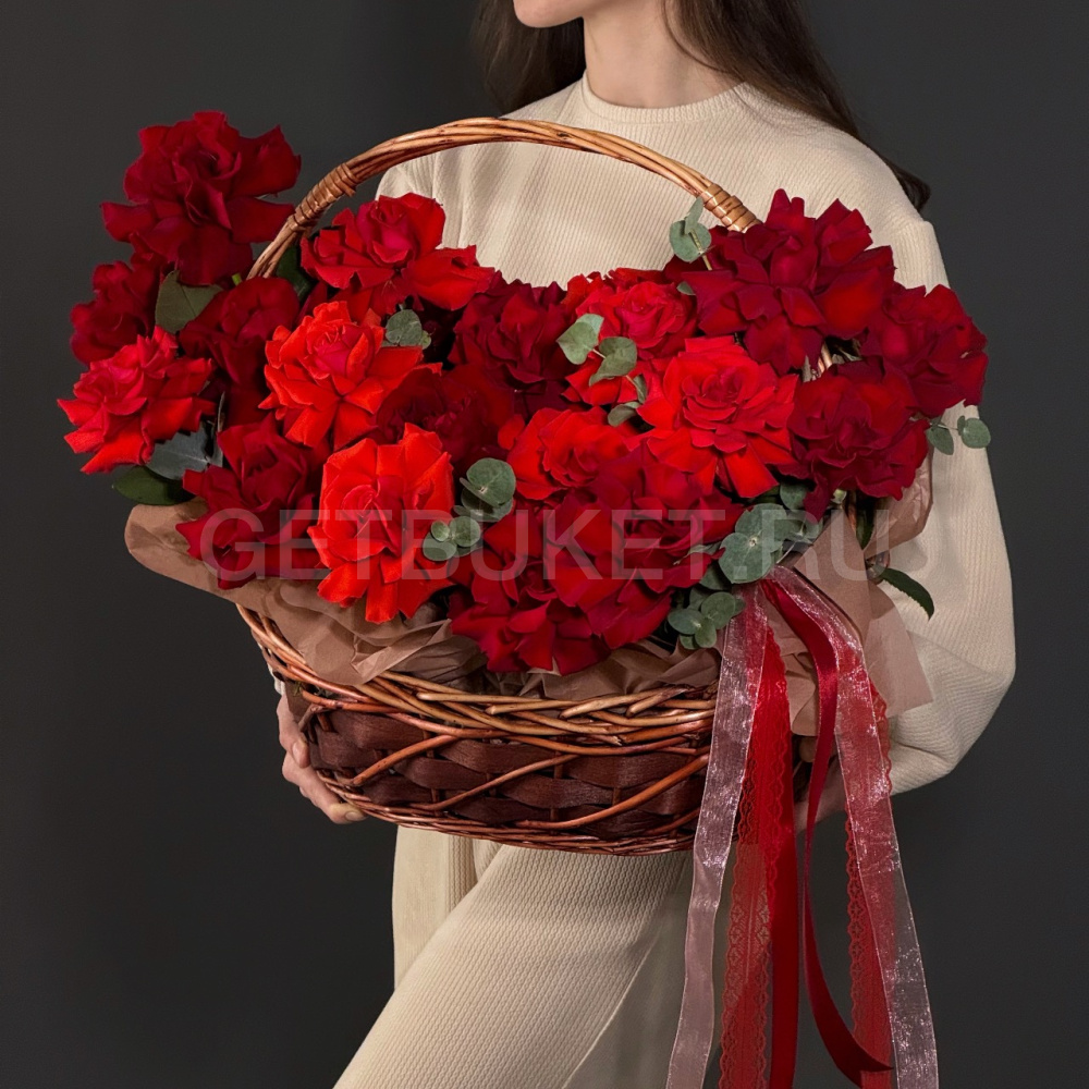 Цветочная корзина из 27 красных роз