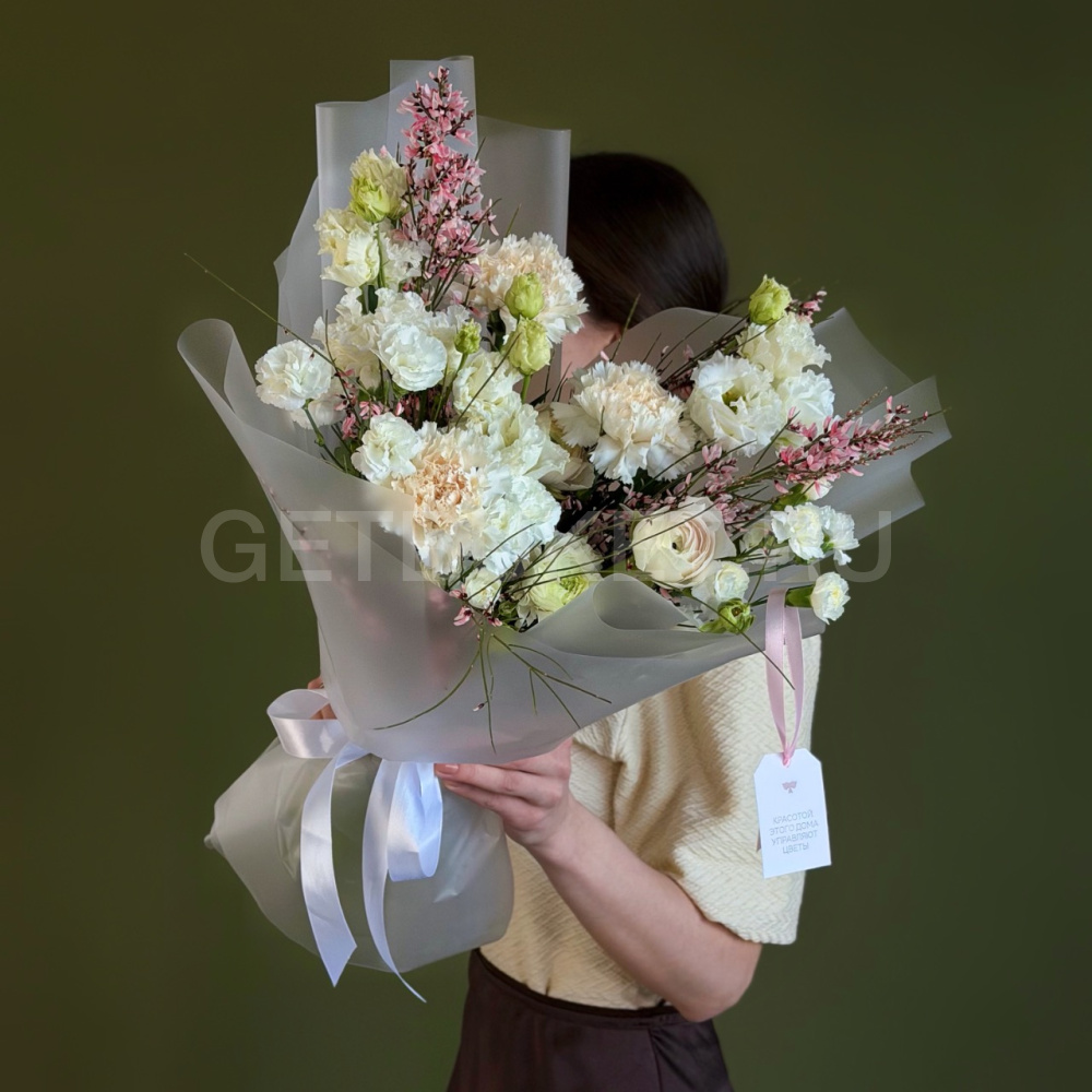 Букет из гвоздик, рунукулюса с эустомой и вербой6 950 ₽Букет из гвоздик, рунукулюса с эустомой и вербой 6 950 ₽ -